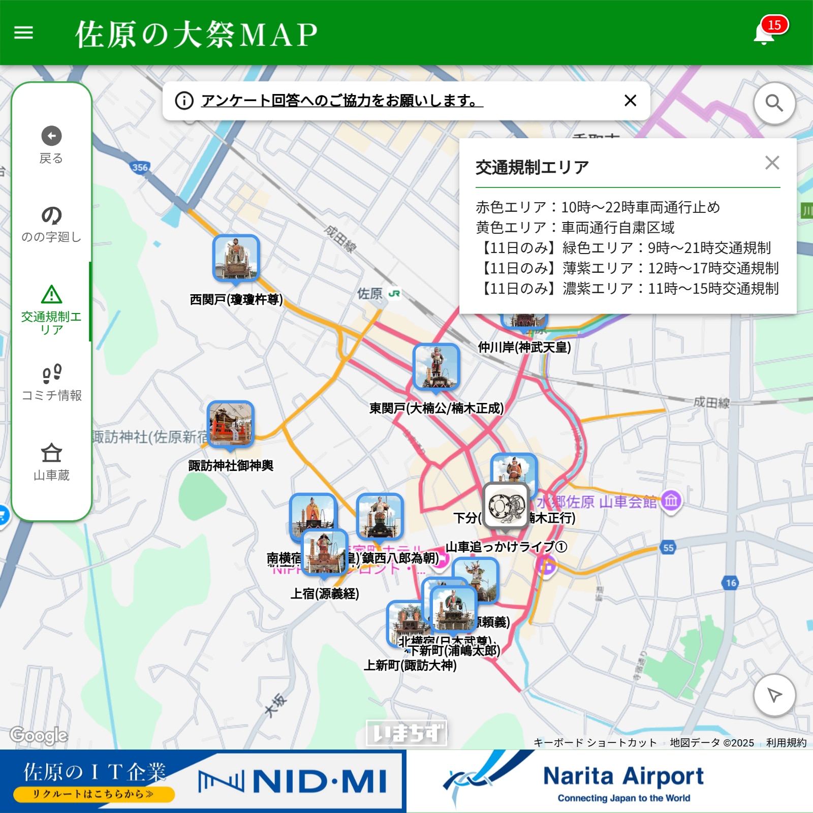 佐原の大祭MAPは、佐原の大祭実行委員会が提供するデジタルマップ(地図情報)サービスです。